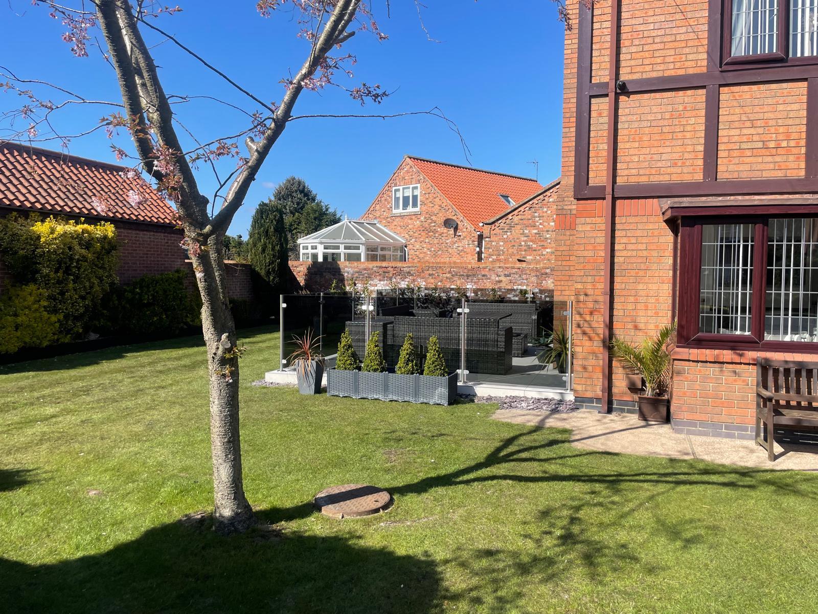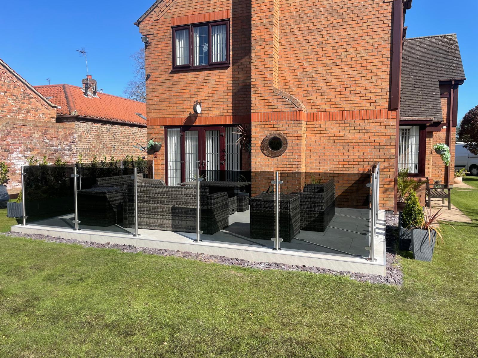 Bridliington Balustrade InstallThe customer had previously had their garden landscaped with a raised patio area to the rear of the house which had a drop of greater than 600mm, which therefore needed a safe barrier.