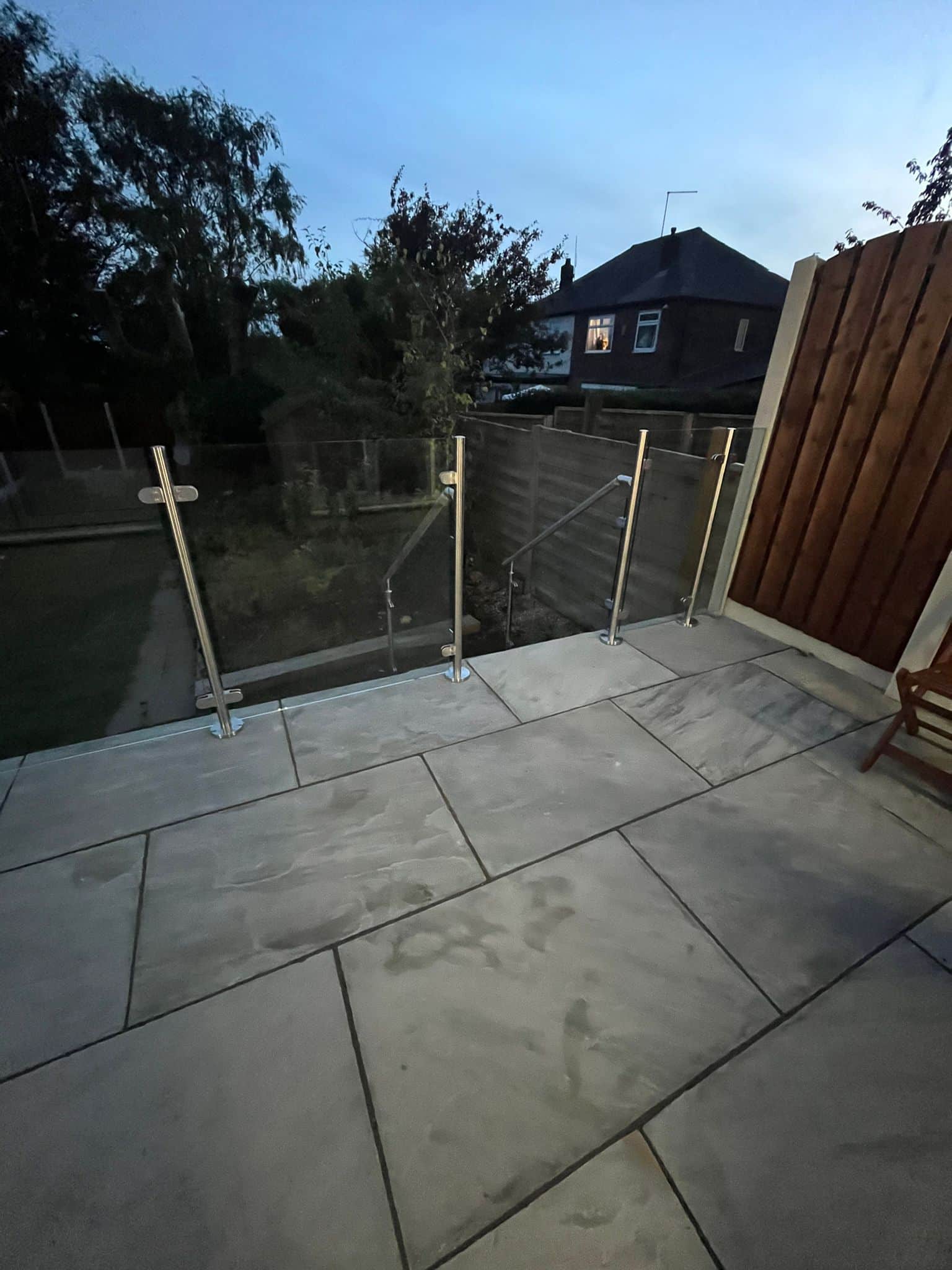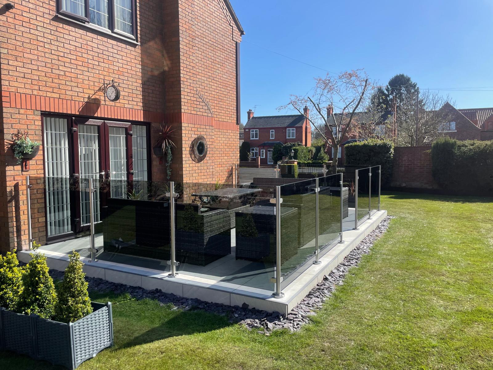 Stainless Steel & Glass Balustrade Installation DoncasterOur customer had their garden re-landscaped to replace the unusable sloping lawn with a flat patio. However, this created two large drops which were unsafe for their grandchildren.