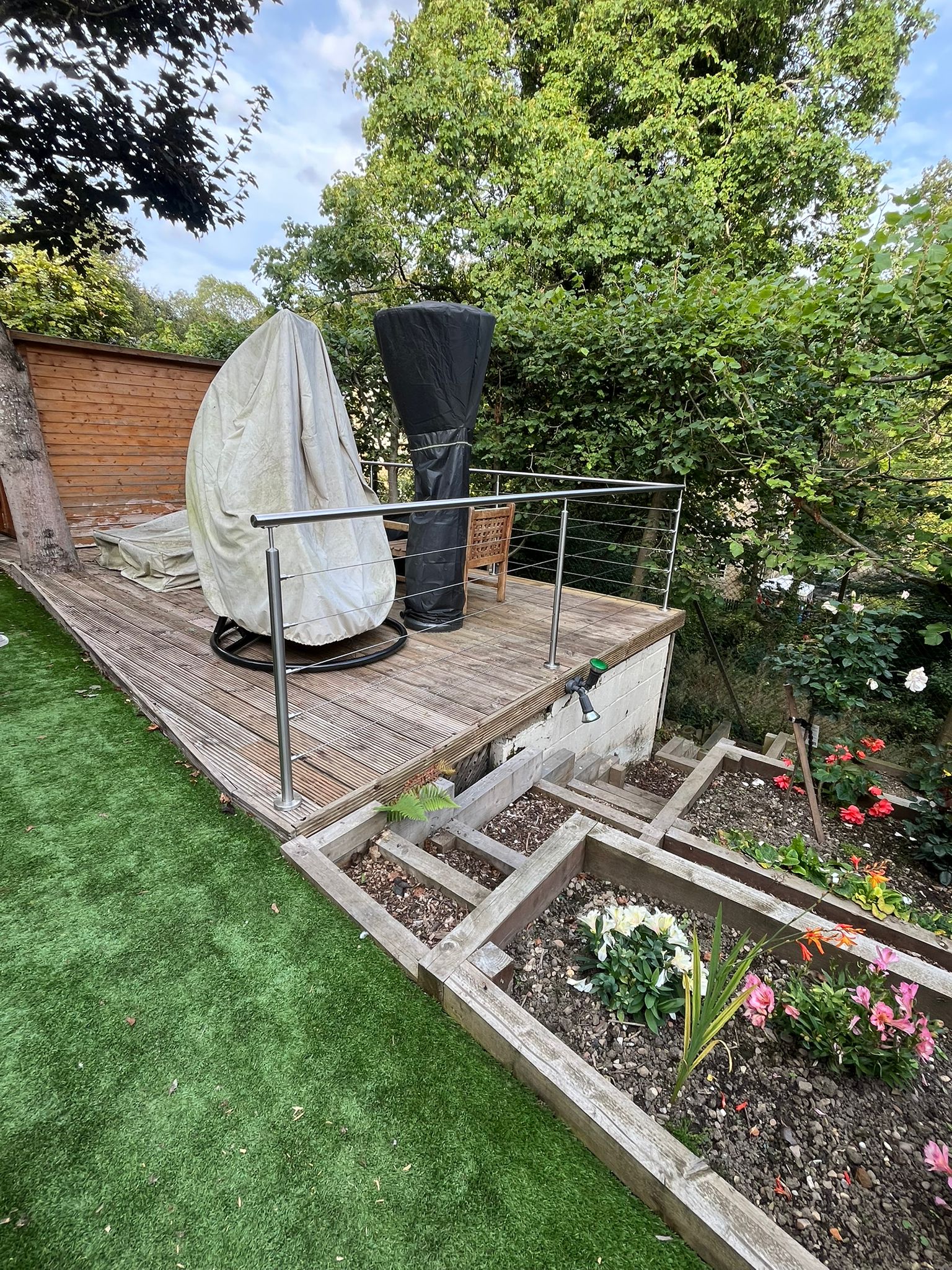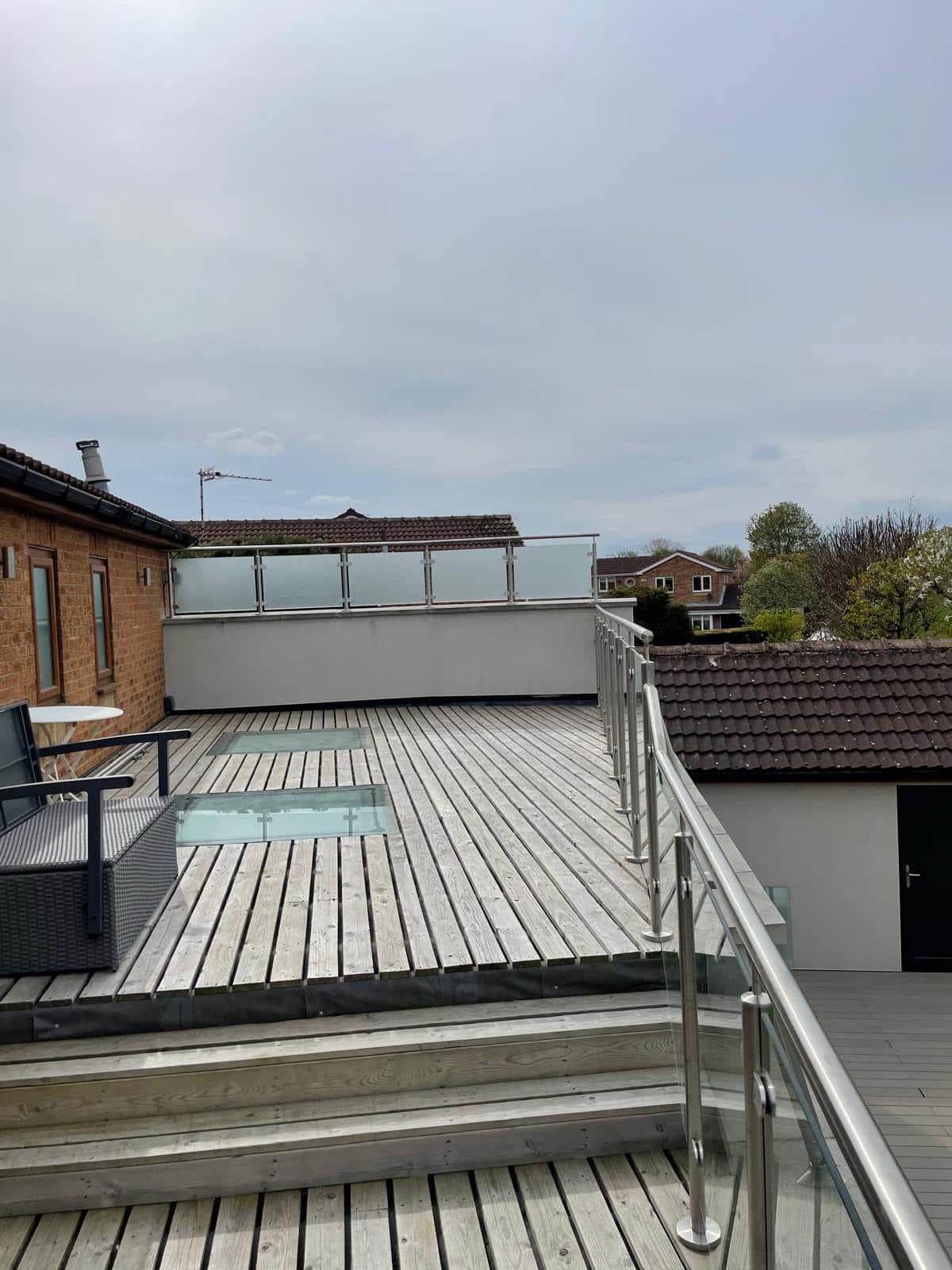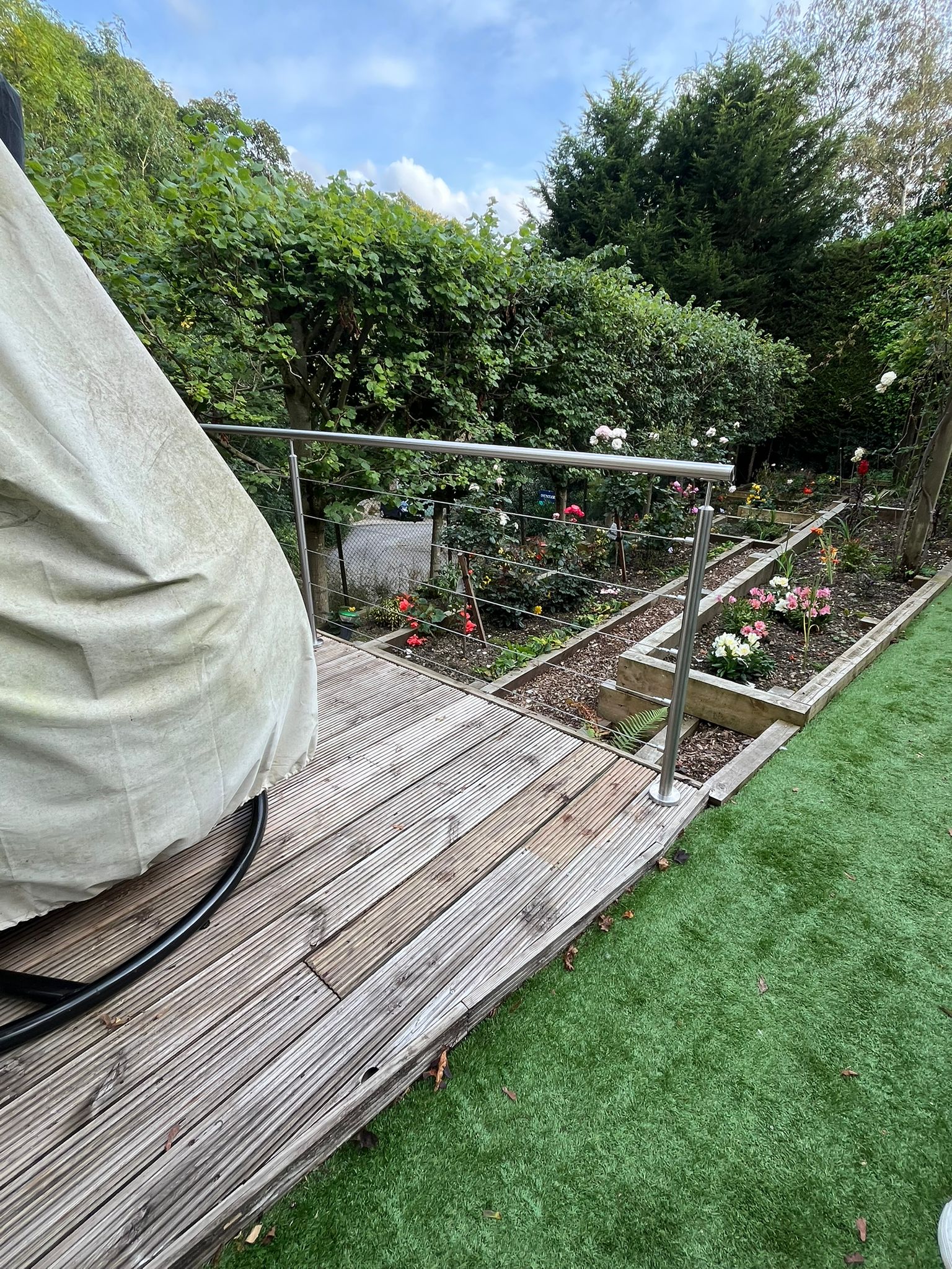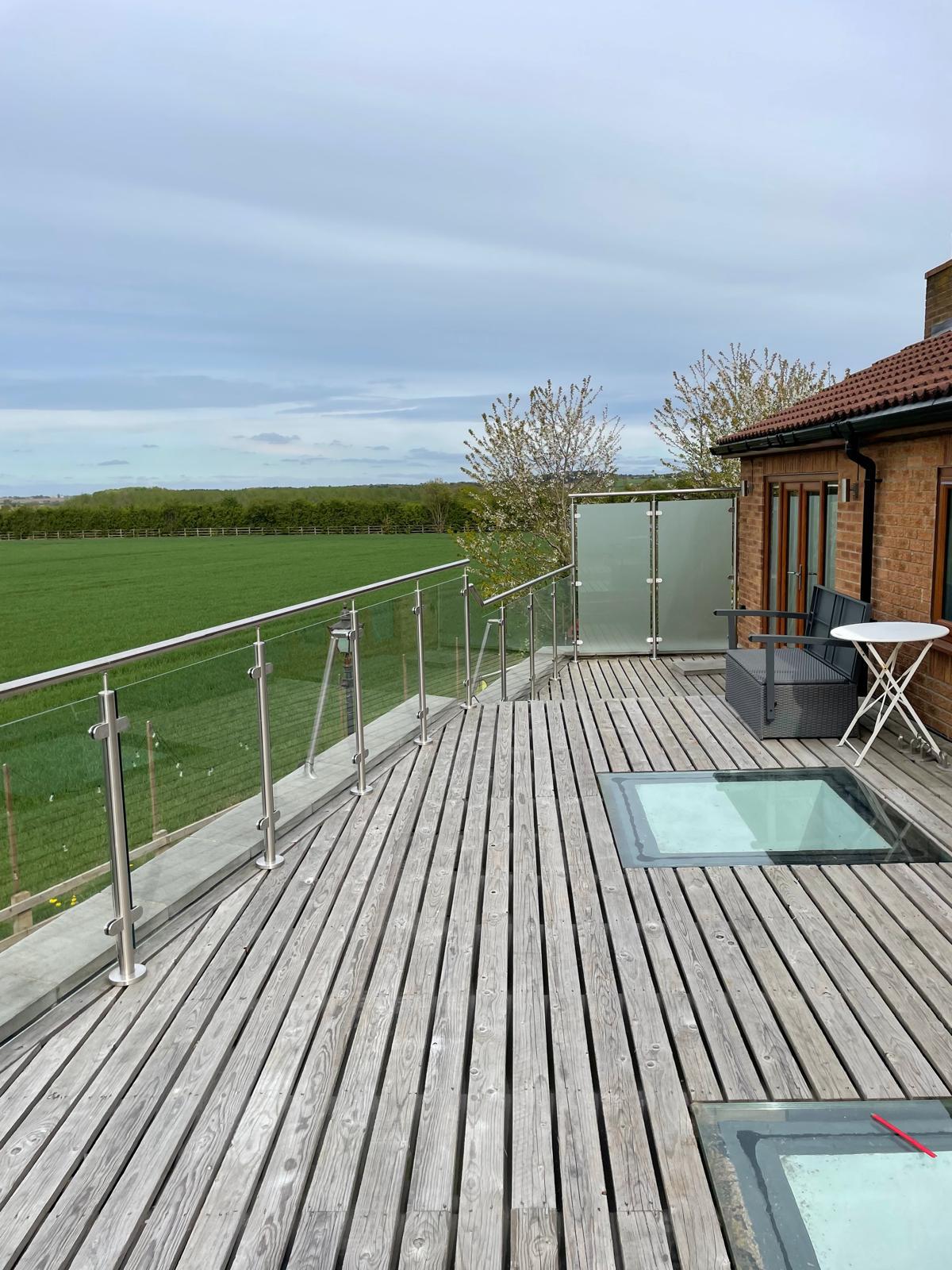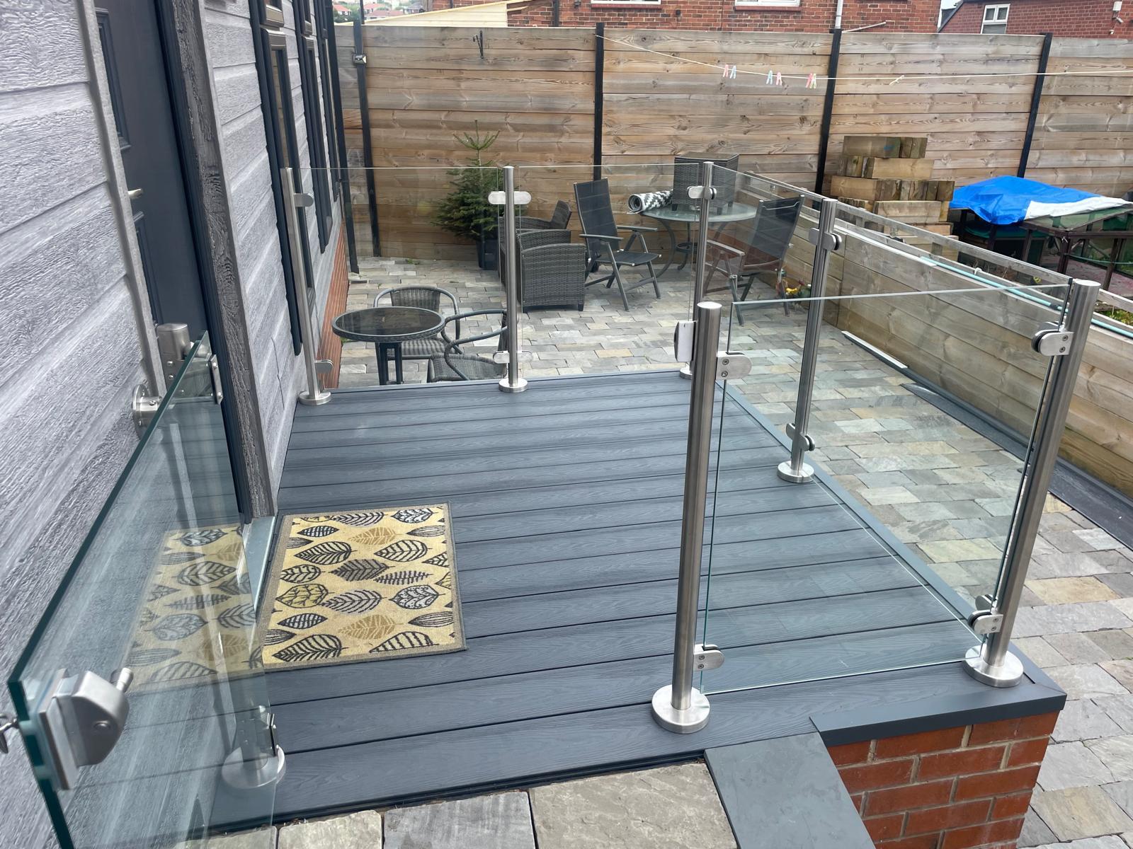 The customers had a new decking area installed which had a drop to the next area of their garden. They required a balustrade system to make this area safe for their young child. We provided and installed a post, handrail and glass system to meet their needs. Due to the stylish new balustrade the area is now a safe unasble space.