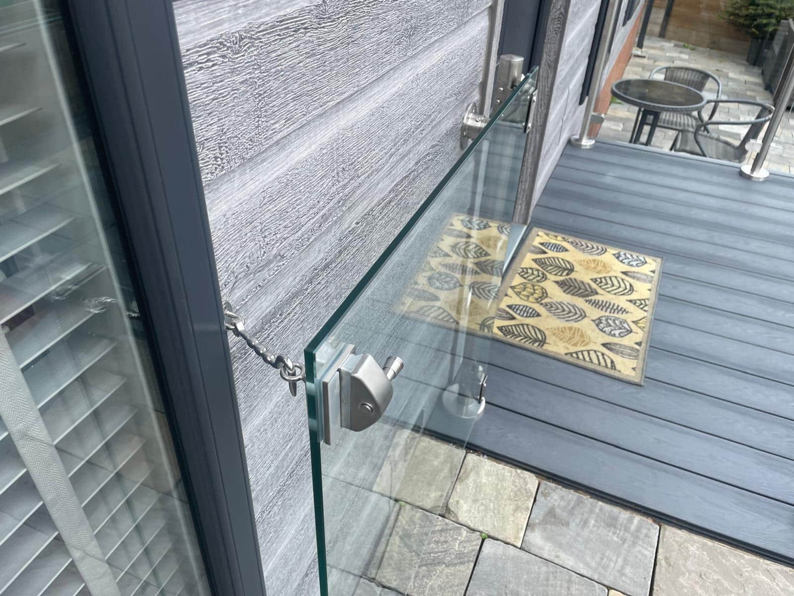 The customer chose a frameless system, but due to rain water needing to run off the patio channel, this wasn’t possible as it would have held water.